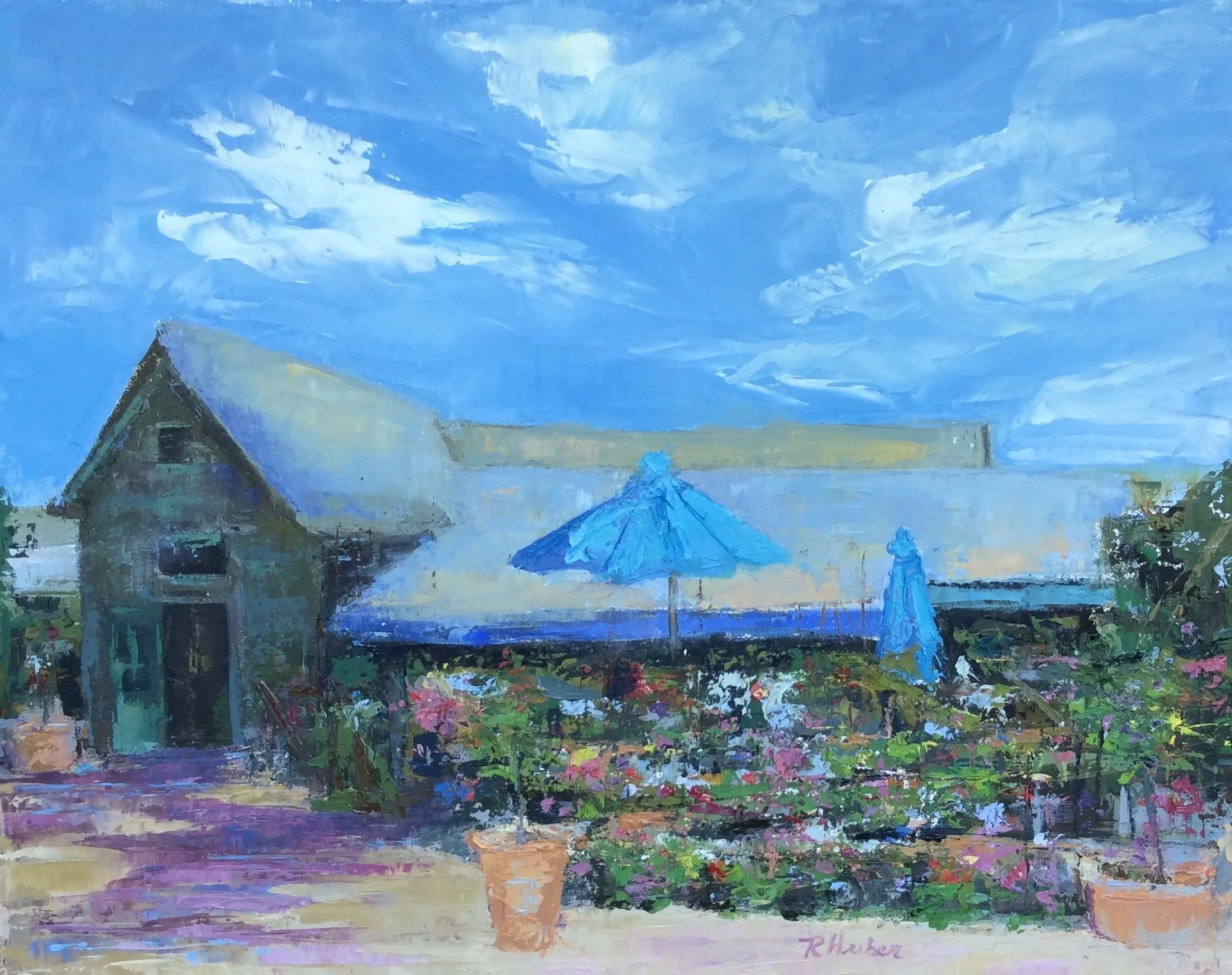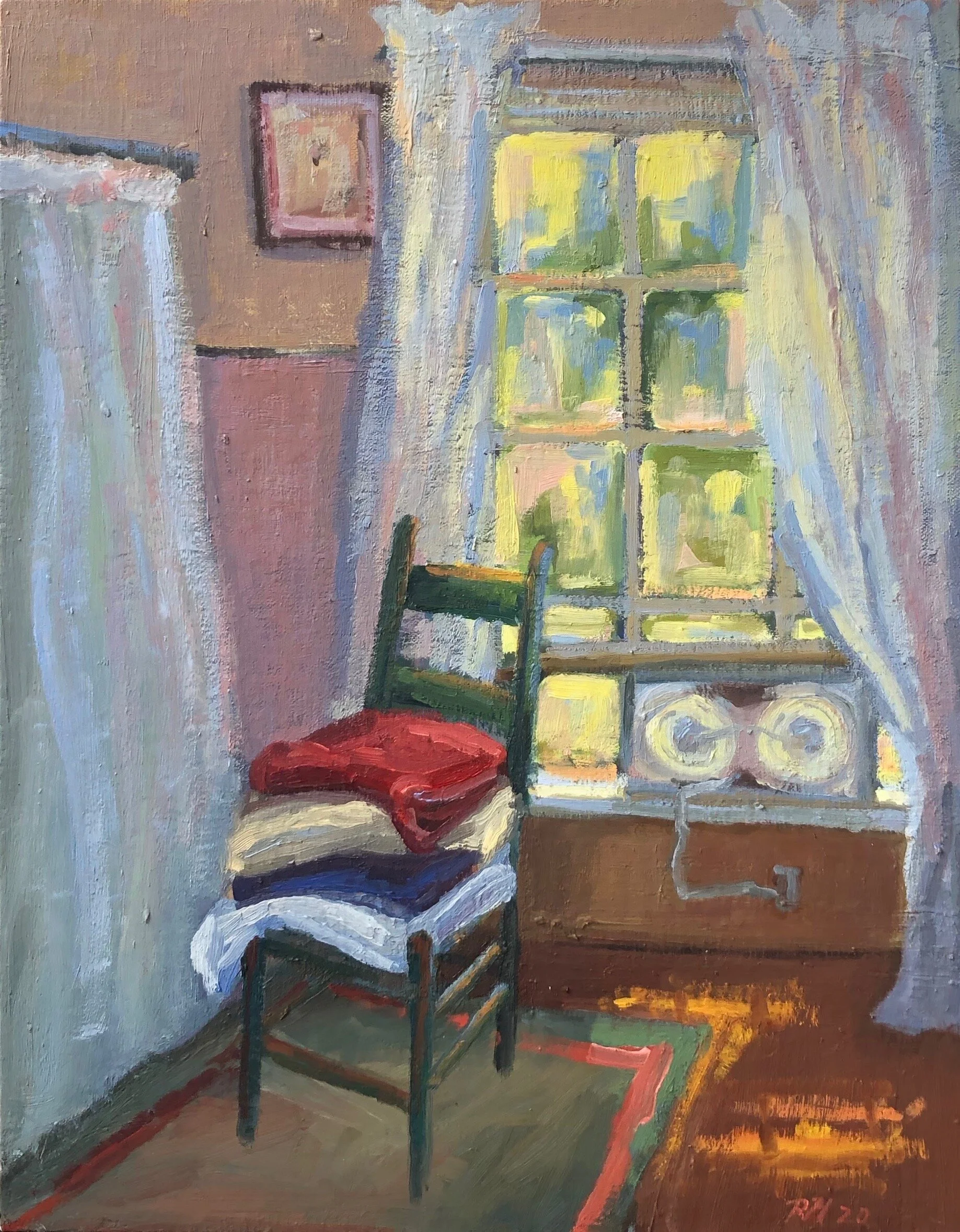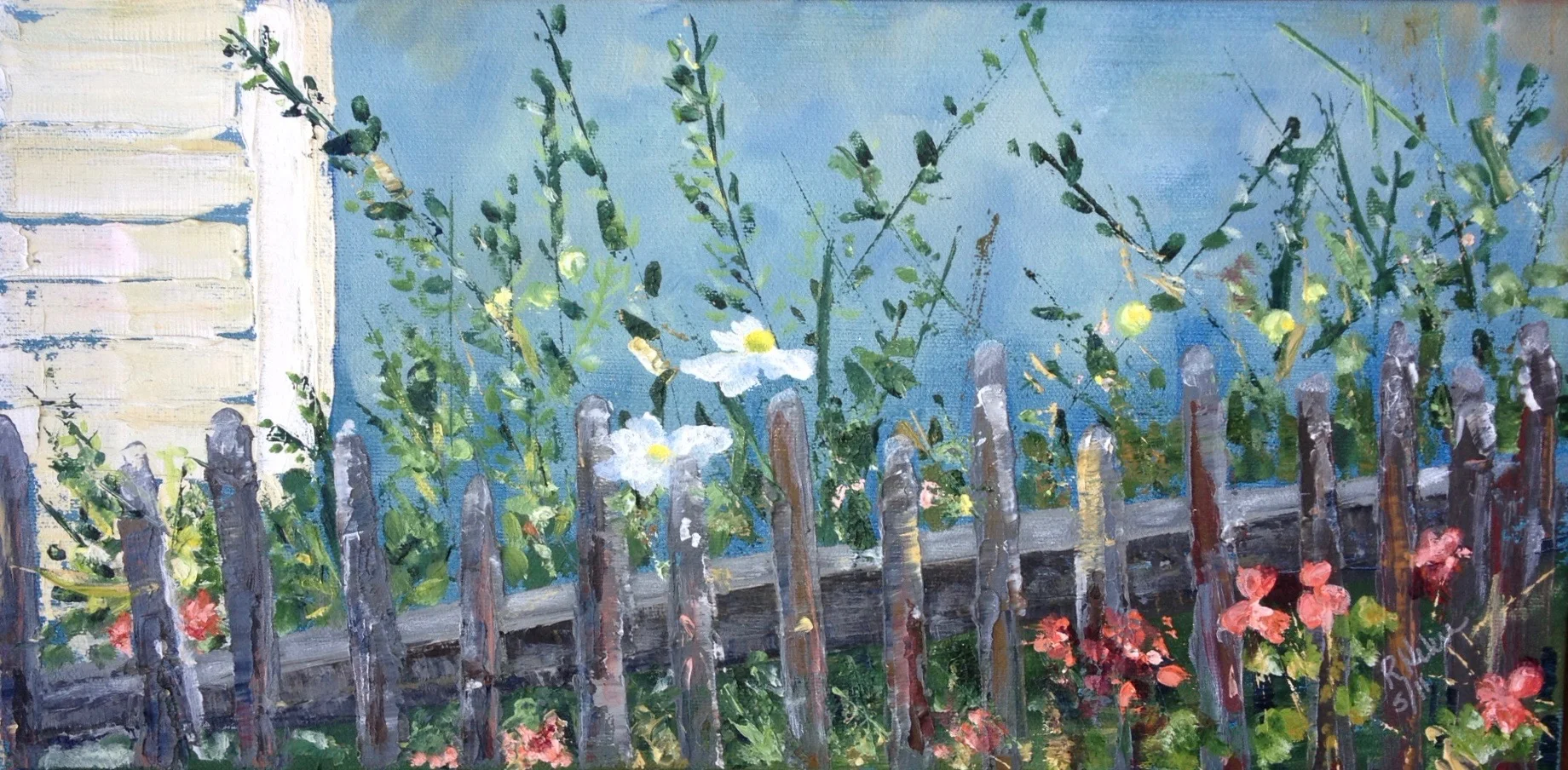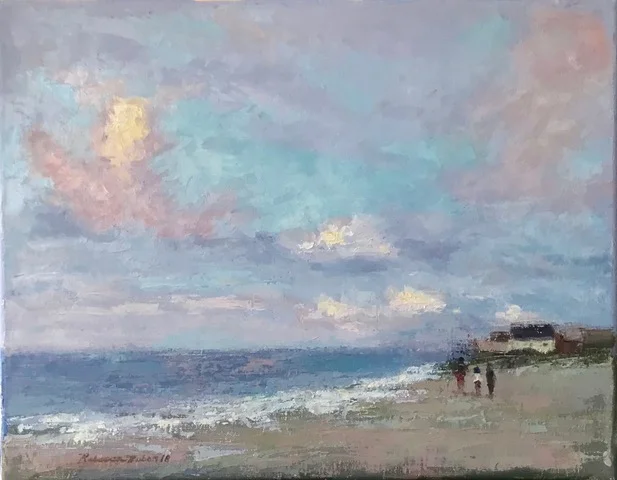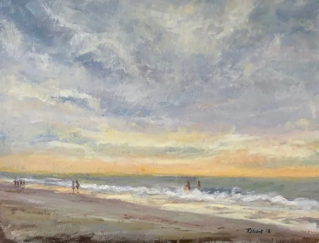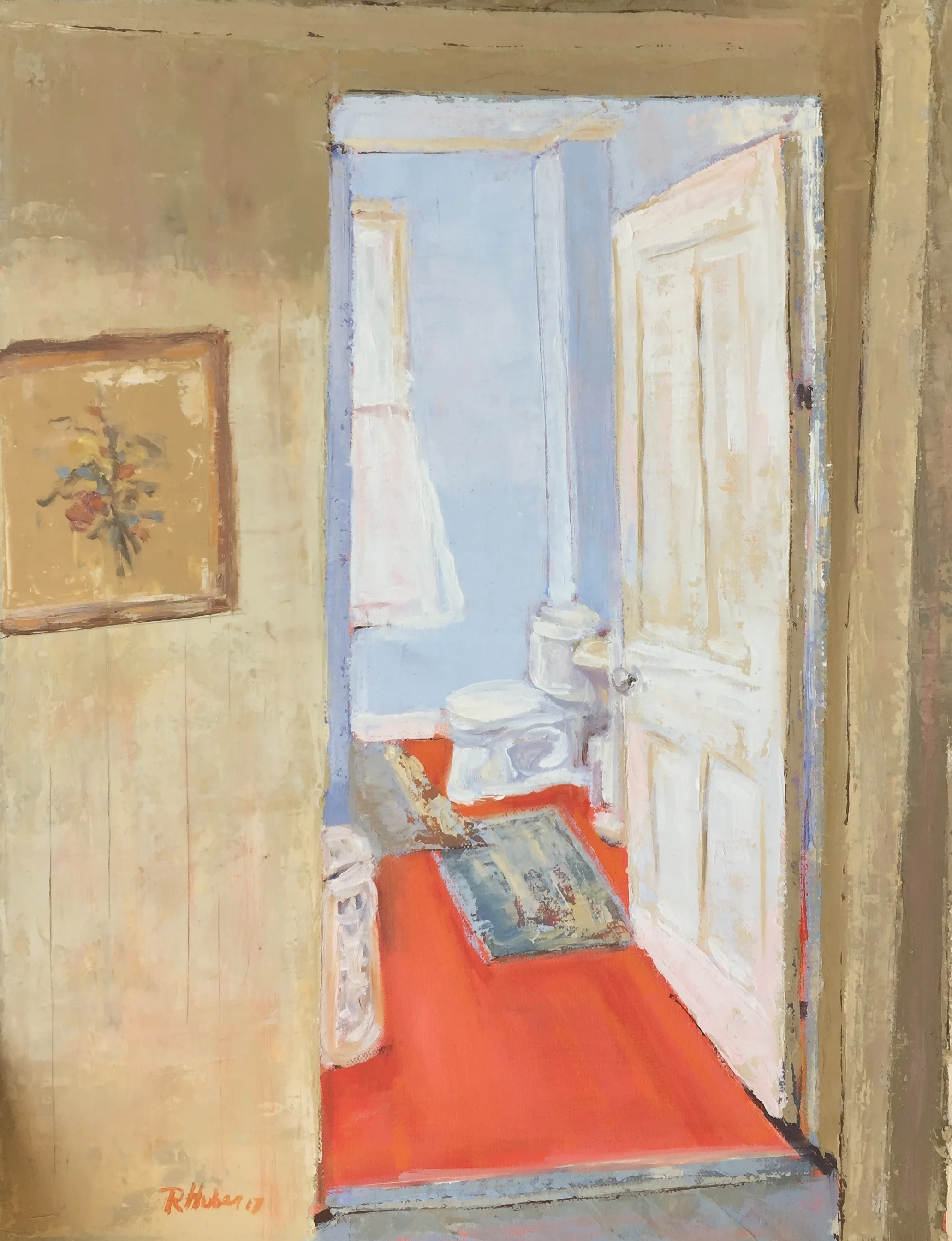 I am a painter of historical fiction. Inspired by the strength and charm of old garden gates, cottage interiors with crooked windows and painted, warn floorboards from years of good company. These are reminders of simpler times where stories and memories come from. My work also reflects calm and picturesque moments found in early morning beach walks, children splashing in the ocean, dogs fetching sticks, trickling streams and hidden paths. My palette knives, brushes and oil paints layer fresh, earthy colors and give texture, creating realistic impressions and capturing a feeling of place and time. The perspective used in my landscape and interior paintings bring you to places I have traveled and are reminders of beauty that surrounds us. All we really need are the unwrapped gifts found in our homes and outside the kitchen door.