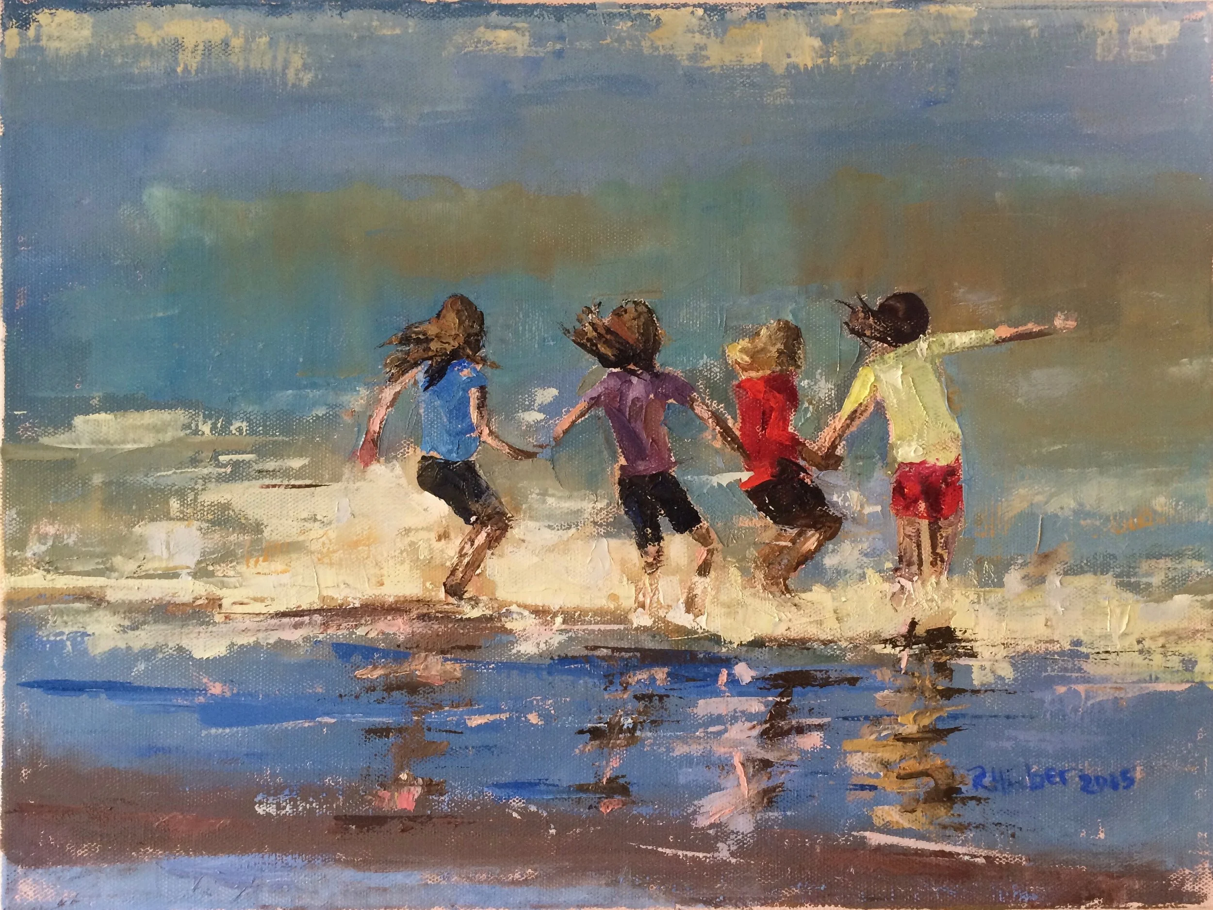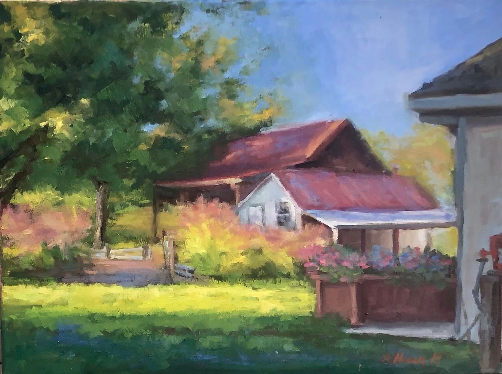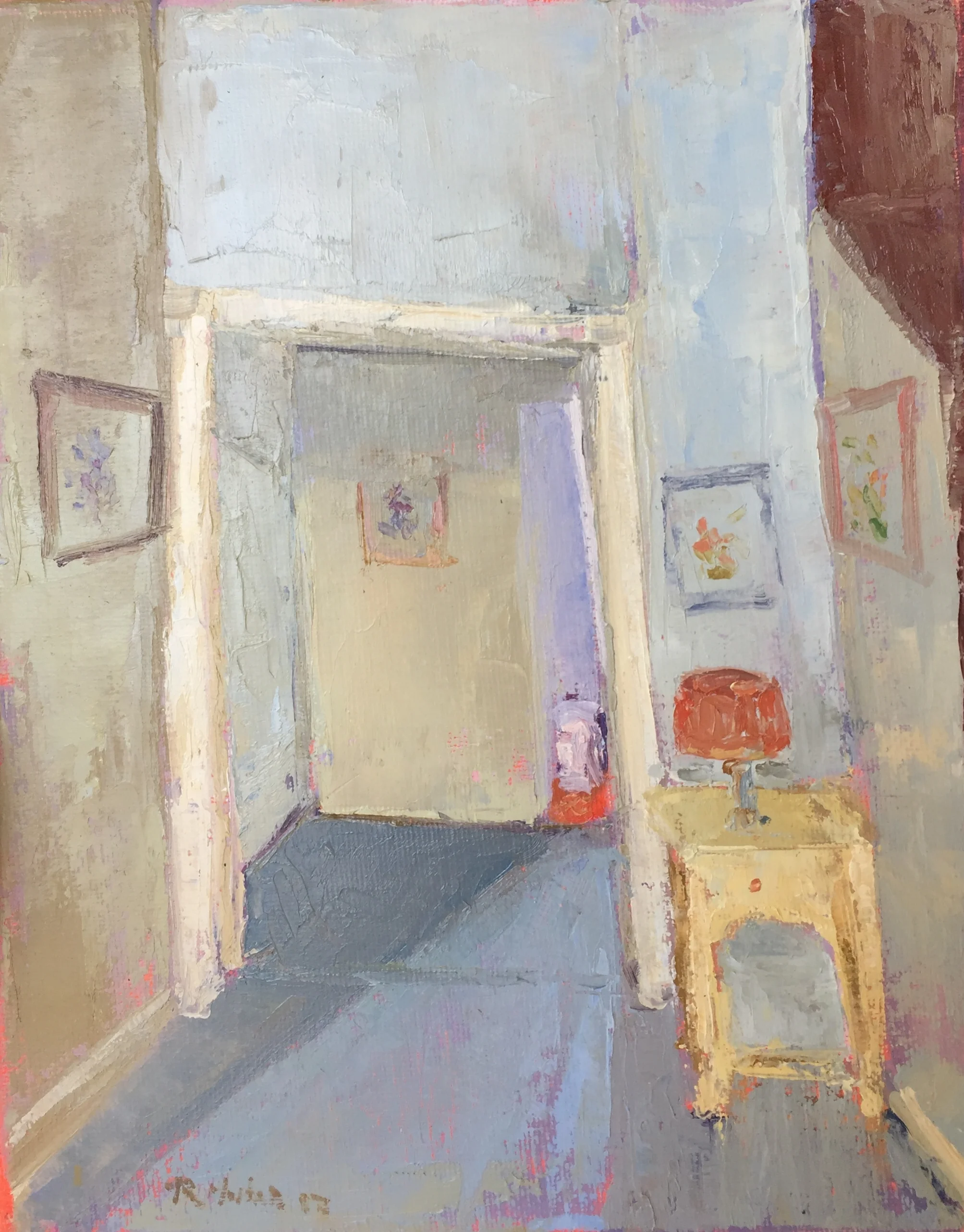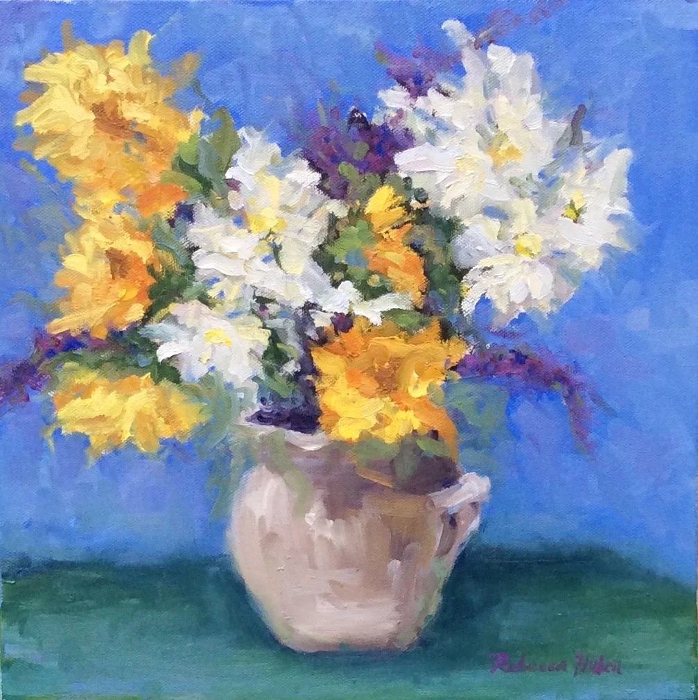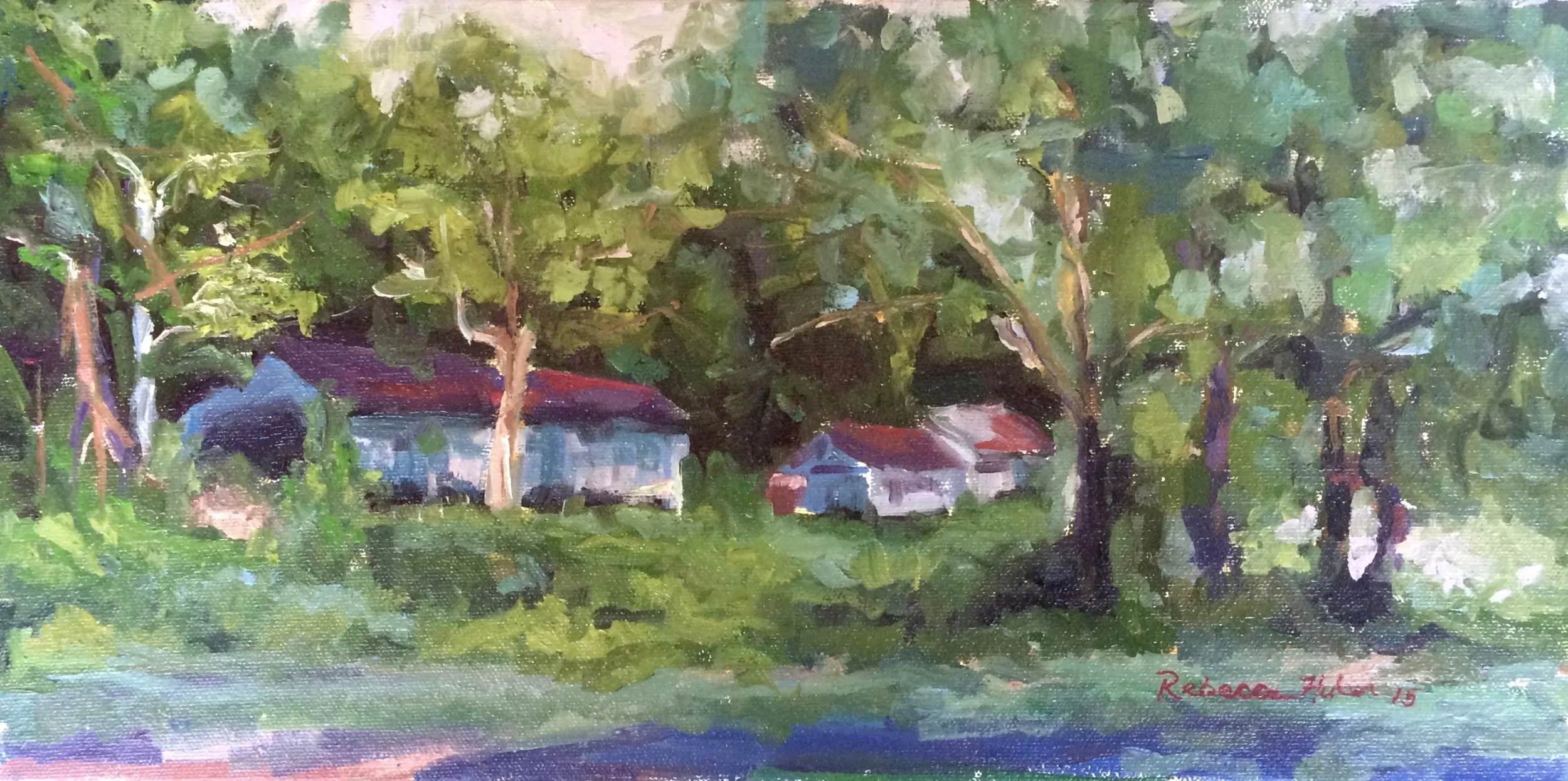 I am a painter of historical fiction. Inspired by the strength and charm of old garden gates, cottage interiors with crooked windows and painted, warn floorboards from years of good company. These are reminders of simpler times where stories and memories come from. My work also reflects calm and picturesque moments found in early morning beach walks, children splashing in the ocean, dogs fetching sticks, trickling streams and hidden paths. My palette knives, brushes and oil paints layer fresh, earthy colors and give texture, creating realistic impressions and capturing a feeling of place and time. The perspective used in my landscape and interior paintings bring you to places I have traveled and are reminders of beauty that surrounds us. All we really need are the unwrapped gifts found in our homes and outside the kitchen door.