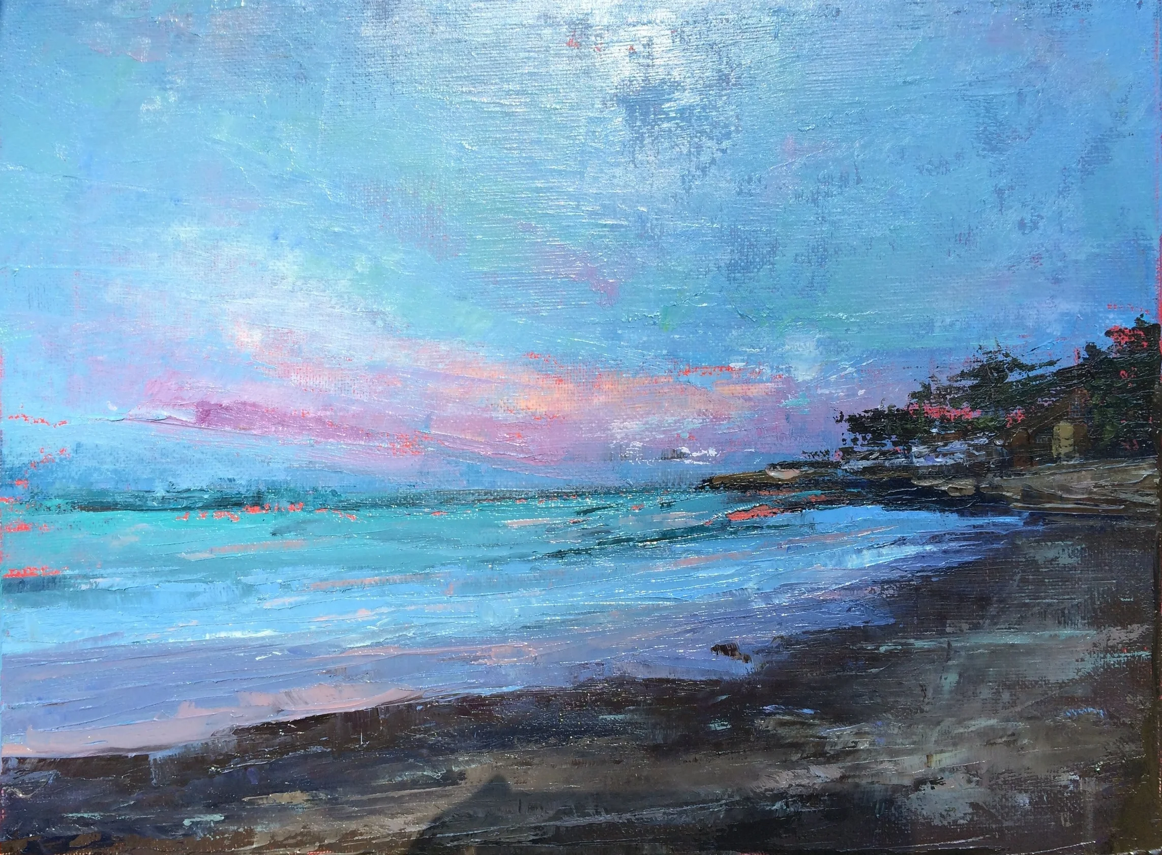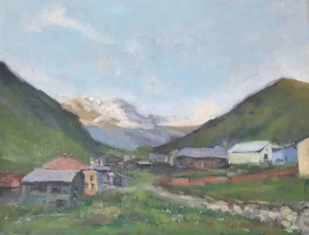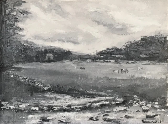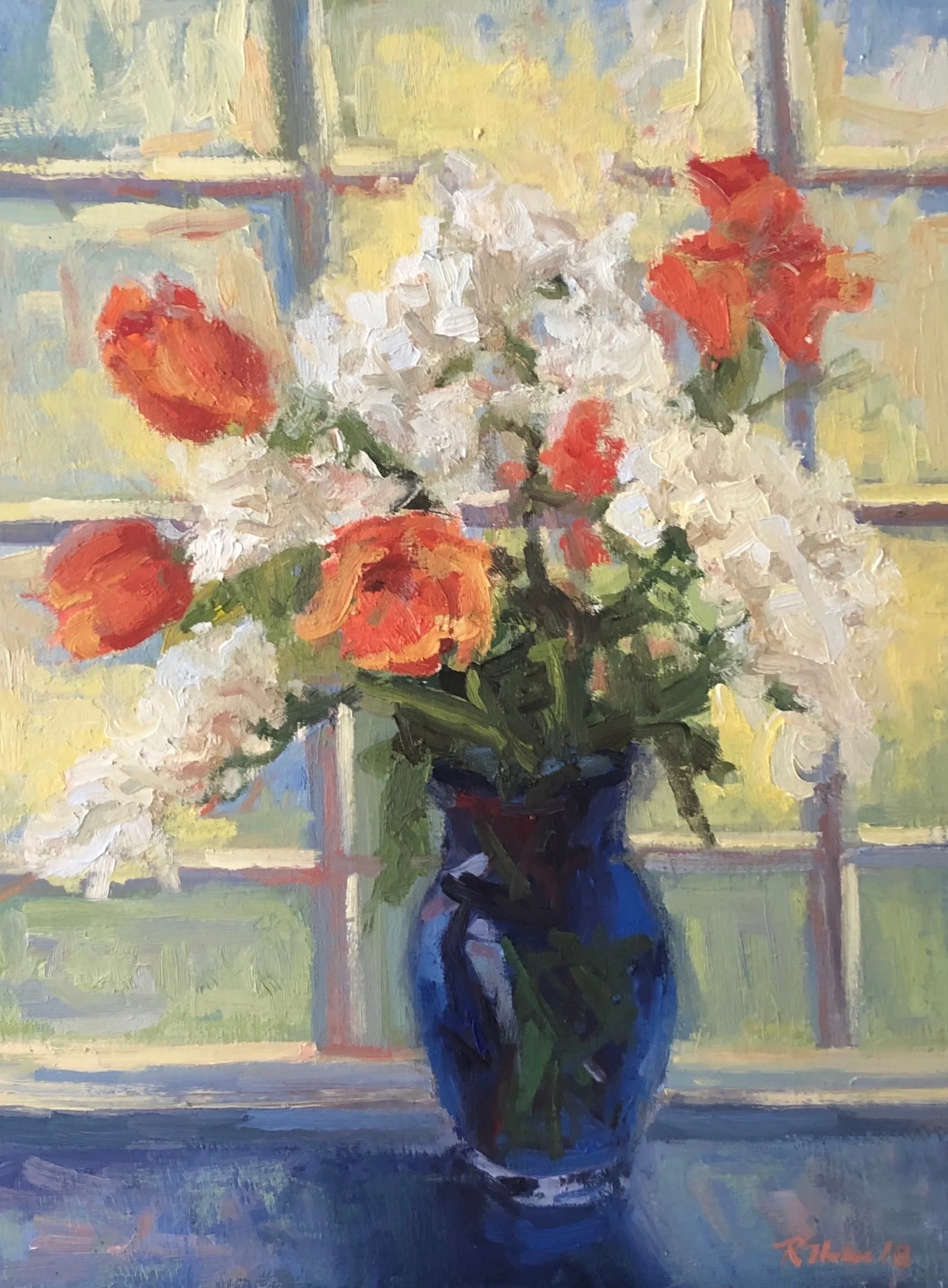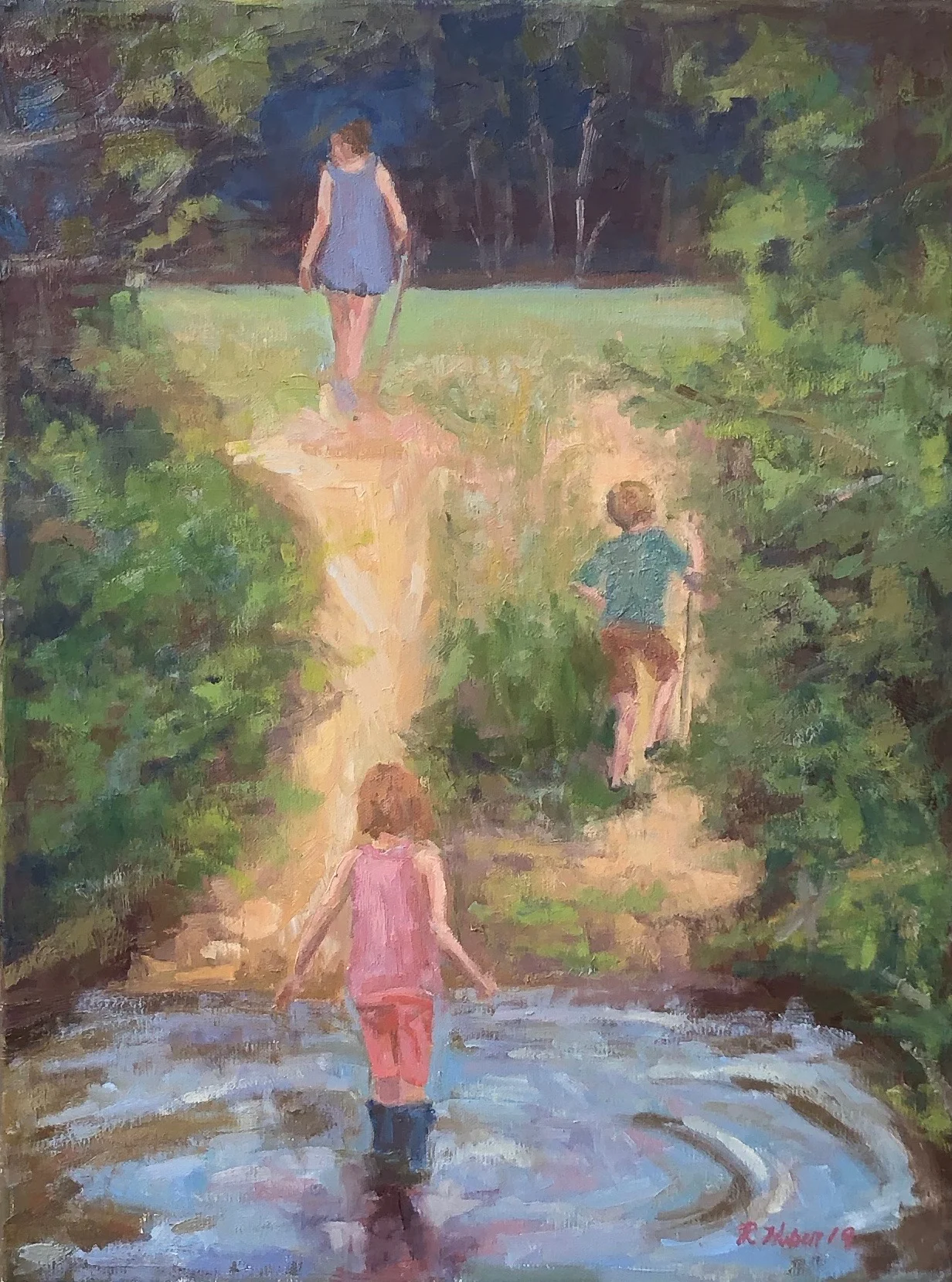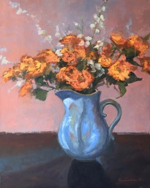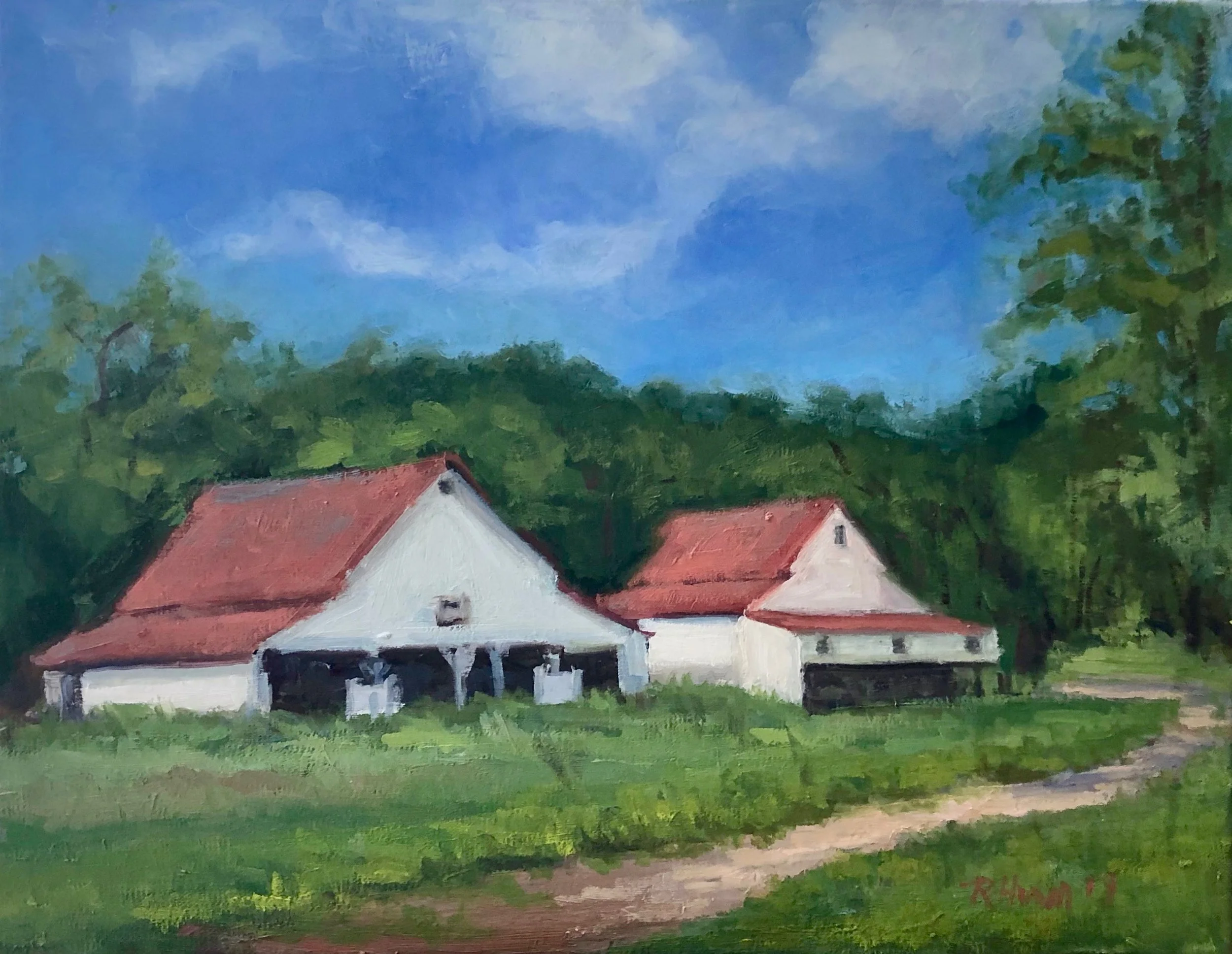 I am a painter of historical fiction. Inspired by the strength and charm of old garden gates, cottage interiors with crooked windows and painted, warn floorboards from years of good company. These are reminders of simpler times where stories and memories come from. My work also reflects calm and picturesque moments found in early morning beach walks, children splashing in the ocean, dogs fetching sticks, trickling streams and hidden paths. My palette knives, brushes and oil paints layer fresh, earthy colors and give texture, creating realistic impressions and capturing a feeling of place and time. The perspective used in my landscape and interior paintings bring you to places I have traveled and are reminders of beauty that surrounds us. All we really need are the unwrapped gifts found in our homes and outside the kitchen door.