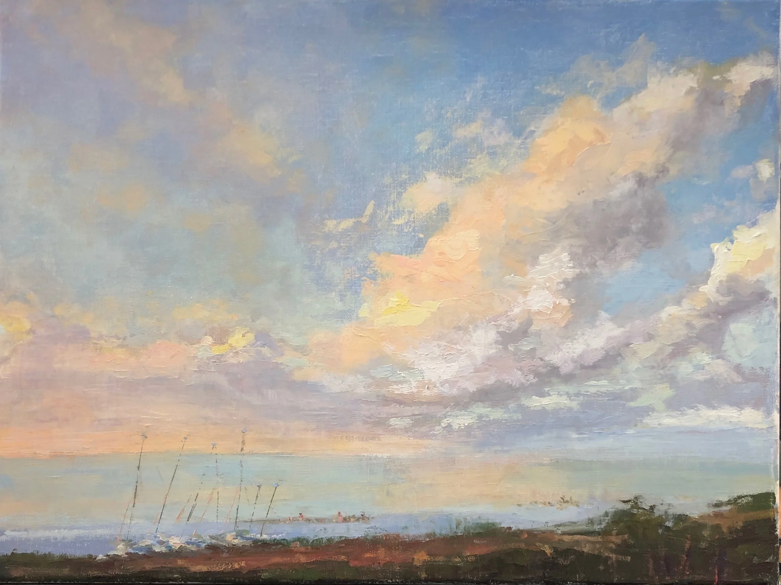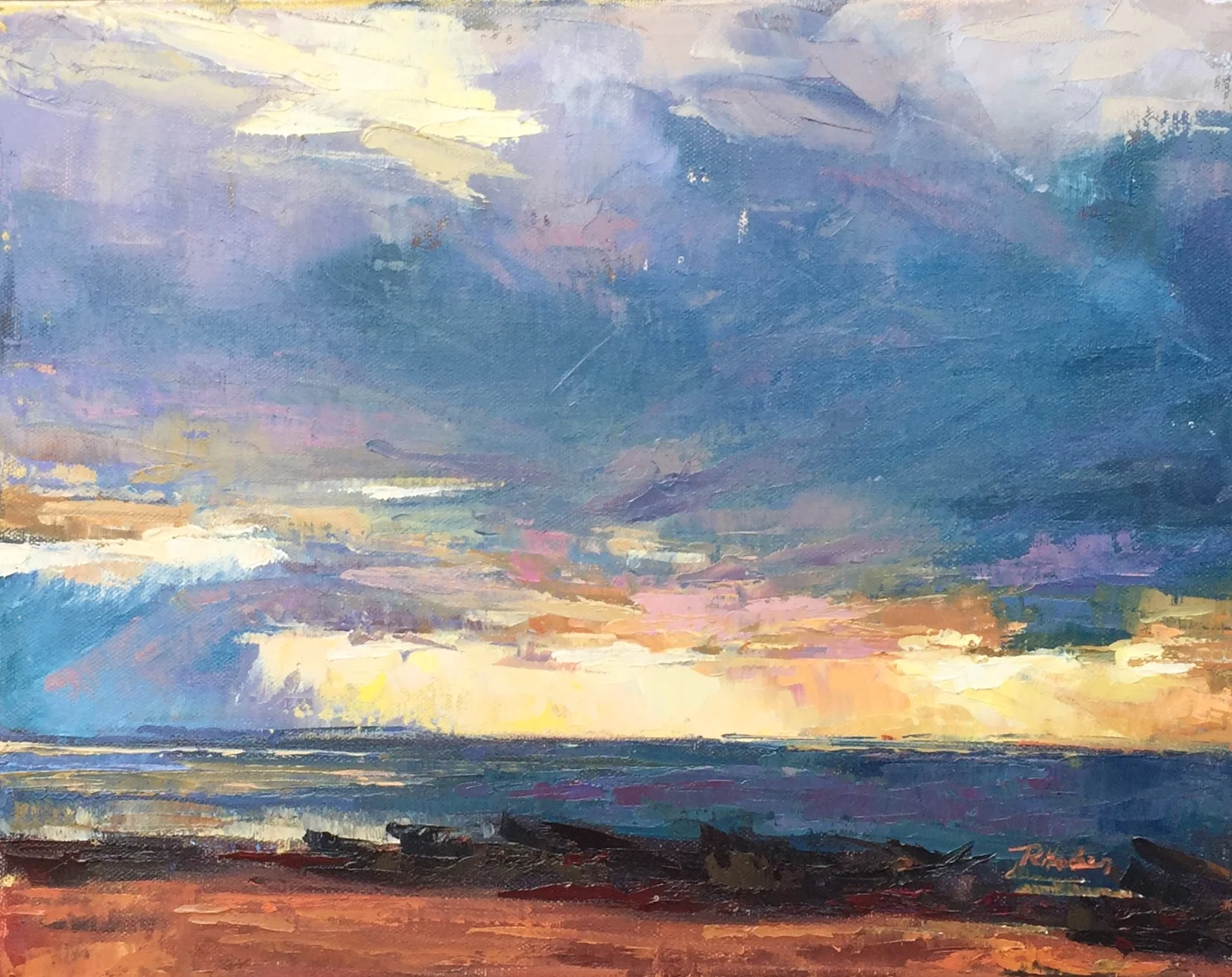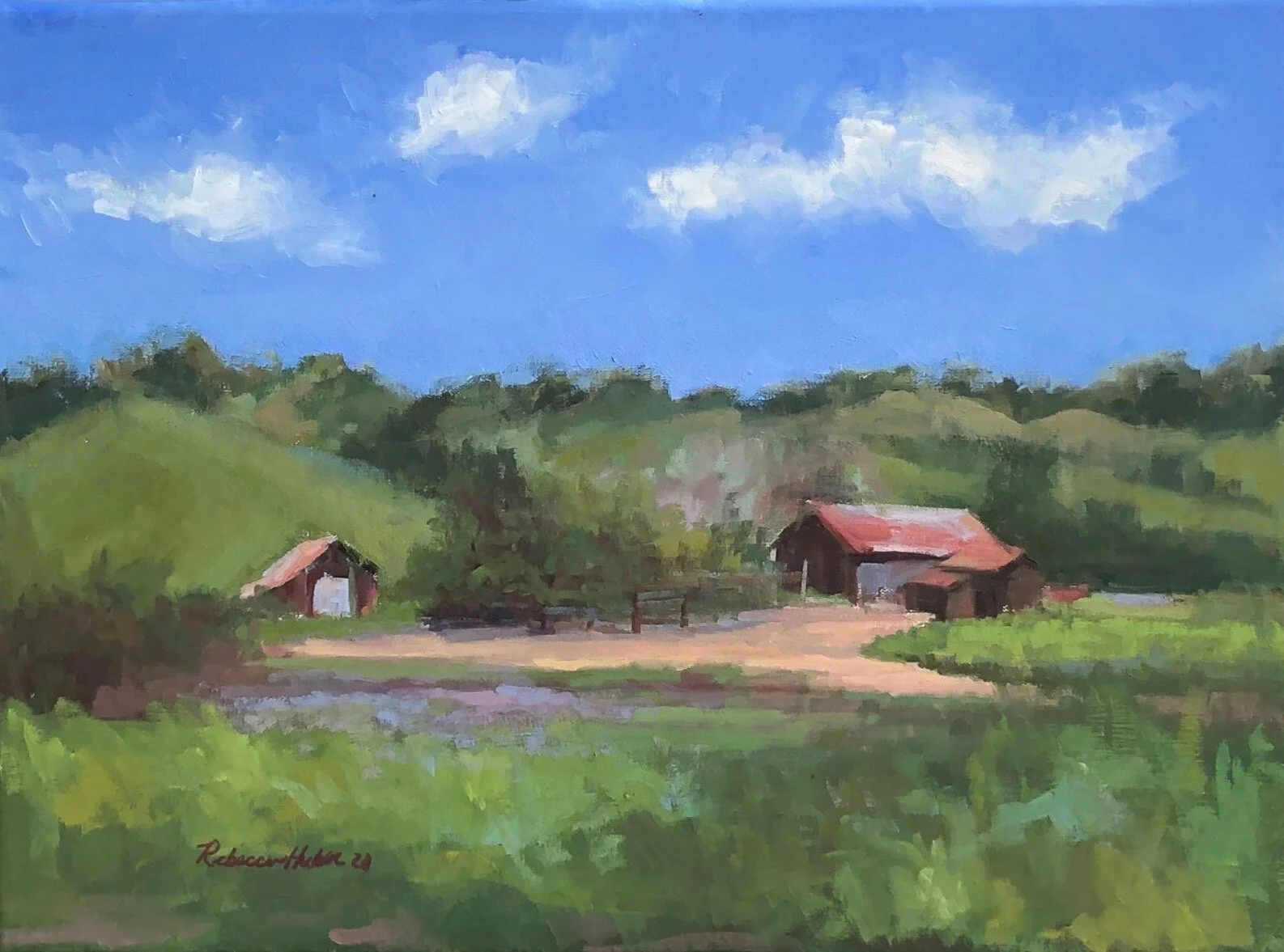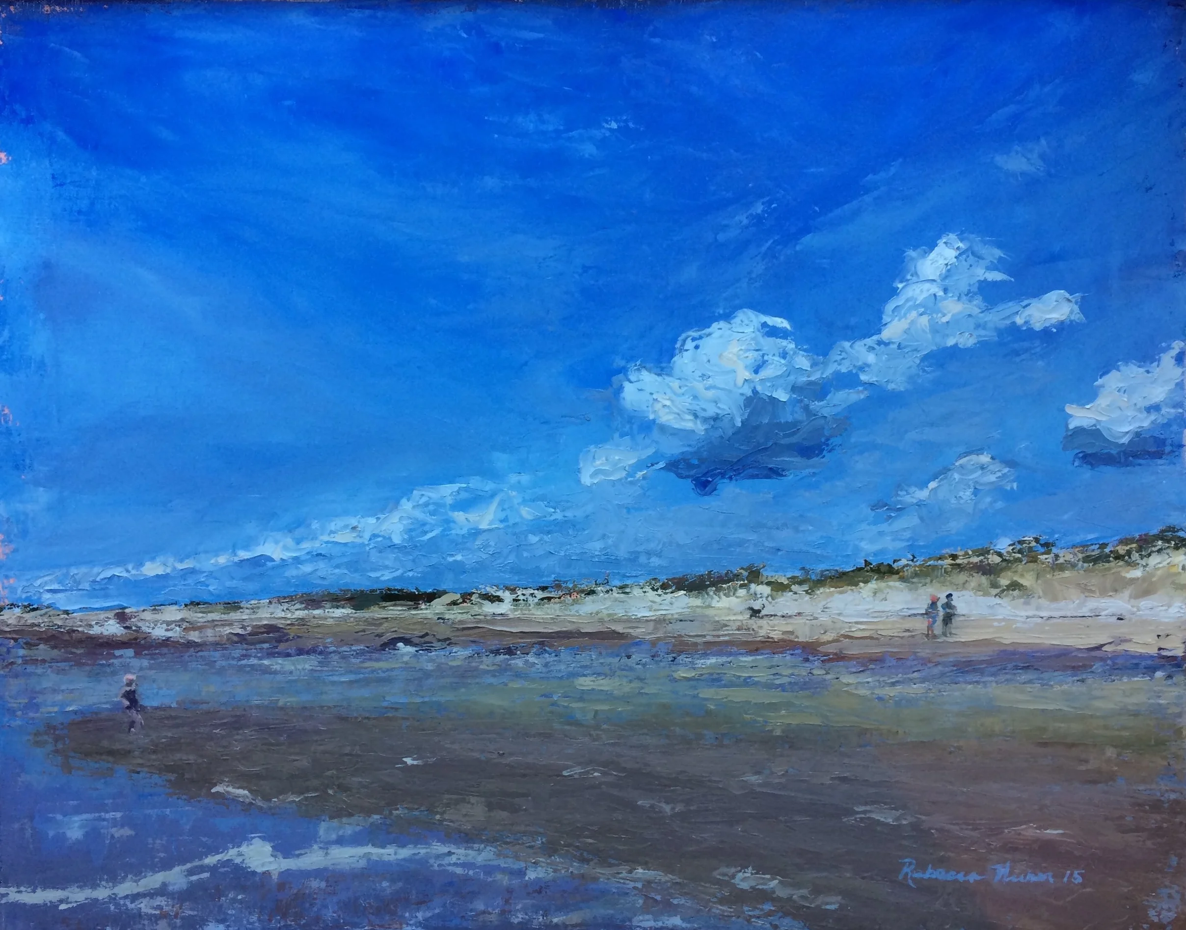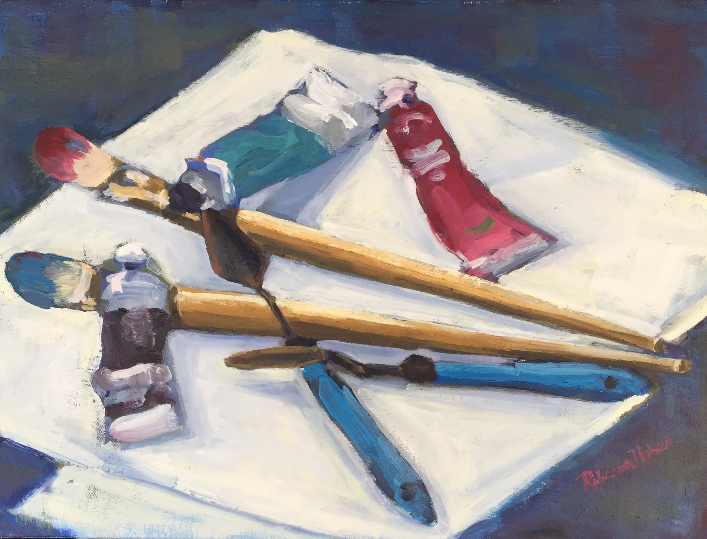 I am a painter of historical fiction. Inspired by the strength and charm of old garden gates, cottage interiors with crooked windows and painted, warn floorboards from years of good company. These are reminders of simpler times where stories and memories come from. My work also reflects calm and picturesque moments found in early morning beach walks, children splashing in the ocean, dogs fetching sticks, trickling streams and hidden paths. My palette knives, brushes and oil paints layer fresh, earthy colors and give texture, creating realistic impressions and capturing a feeling of place and time. The perspective used in my landscape and interior paintings bring you to places I have traveled and are reminders of beauty that surrounds us. All we really need are the unwrapped gifts found in our homes and outside the kitchen door.
