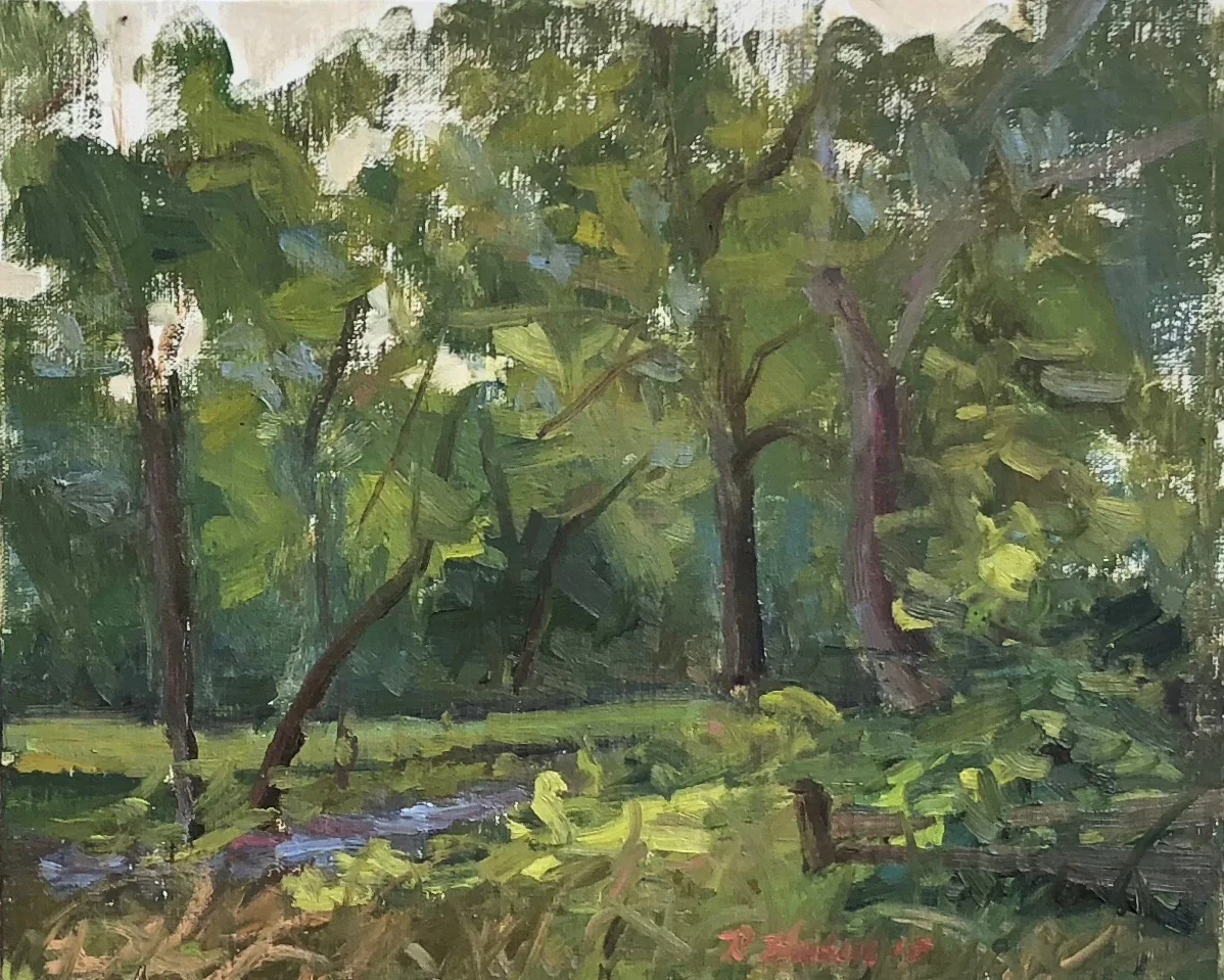 I am a painter of historical fiction. Inspired by the strength and charm of old garden gates, cottage interiors with crooked windows and painted, warn floorboards from years of good company. These are reminders of simpler times where stories and memories come from. My work also reflects calm and picturesque moments found in early morning beach walks, children splashing in the ocean, dogs fetching sticks, trickling streams and hidden paths. My palette knives, brushes and oil paints layer fresh, earthy colors and give texture, creating realistic impressions and capturing a feeling of place and time. The perspective used in my landscape and interior paintings bring you to places I have traveled and are reminders of beauty that surrounds us. All we really need are the unwrapped gifts found in our homes and outside the kitchen door.